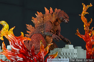 Posing this figure was just as fun as the original. The joints and plastic material felt sturdy and flexible at the same time. Overall, collectors, who enjoy a colorful variety of the same Godzilla figure, may like this version. The concept is quite interesting, and Godzilla looked like a pretty good match to Tamashii (red) flame effects.